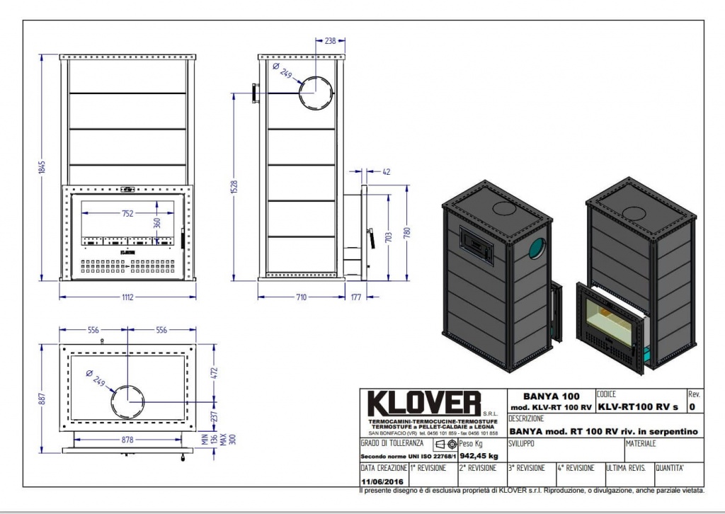 Инструкции, чертежи, документы - Банная печь Klover RT 100-RV в облицовке серпентинит
