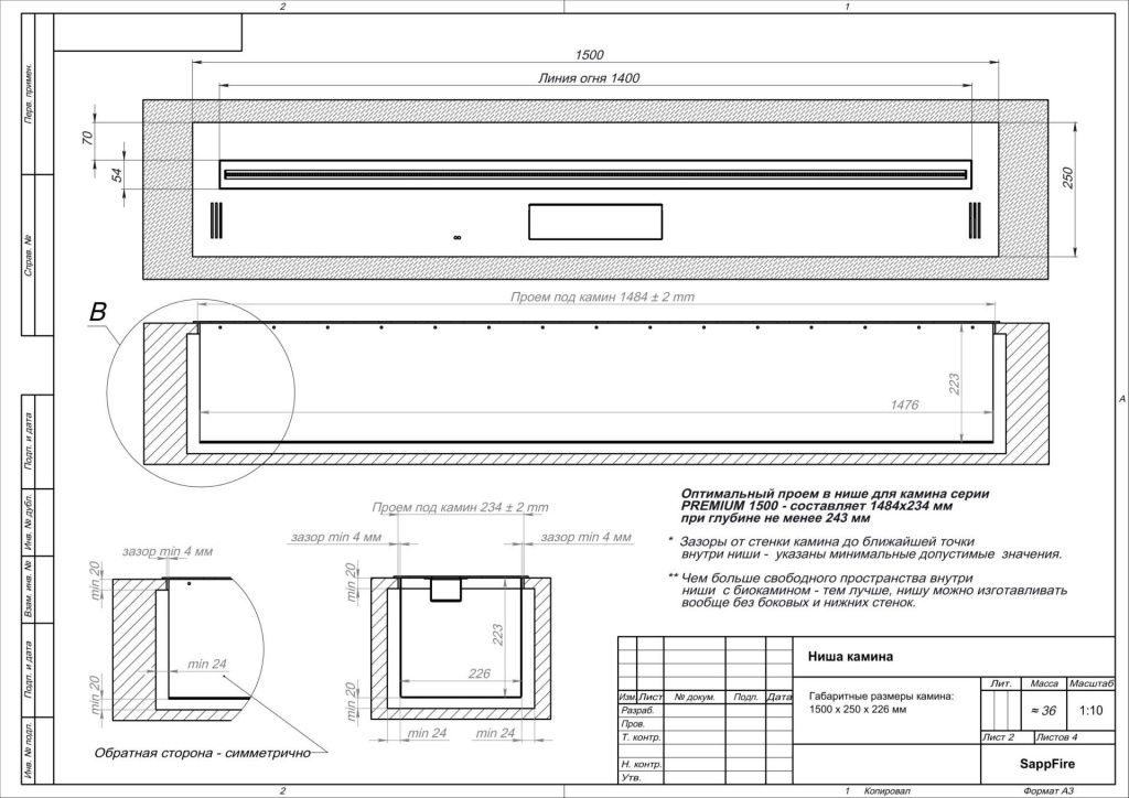 Инструкции, чертежи, документы - Автоматический биокамин SappFire Premium 1500