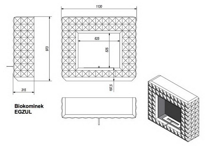 Инструкции, чертежи, документы - Биокамин Kratki Egzul Swarovski, черный глянец
