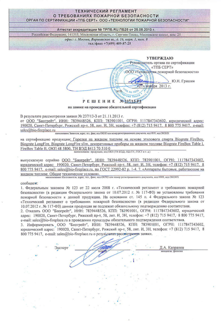 Инструкции, чертежи, документы - Угловой автоматический биокамин Biograte SmartFire L 1300 corner
