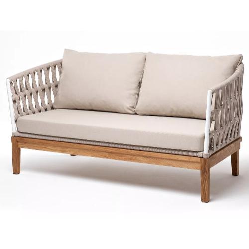 Диван 2-местный плетеный из роупа 4SiS Диего, основание дуб, каркас алюминий светло-серый (RAL7035) шагрень, роуп бежевый круглый, ткань бежевая 15052