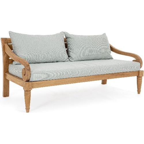 Уличный диван Karuba выполнен из тика, поэтому отличается устойчивостью и долговечностью. Сиденье и подушки - из солнцезащитной олефиновой ткани. Стильный диван Bali идеально подходит для обстановки лаунж зоны в саду или на террасе загородного дома.