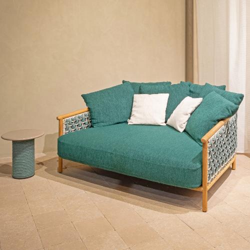- Веревочное плетение роуп на спинке и подлокотниках цвета laguna/light grey. Канаты, используемые в коллекциях Ethimo, предназначены для использования на открытом воздухе и изготовлены из синтетического материала, обладающего высокой устойчивостью к ультрафиолетовым лучам, истиранию и воздействию стихий. Различные по сечению (плоские и круглые) и составу (полипропилен для плоского каната, акрил для круглого каната), они создают чрезвычайно функциональные и удобные плетеные сиденья и спинки.