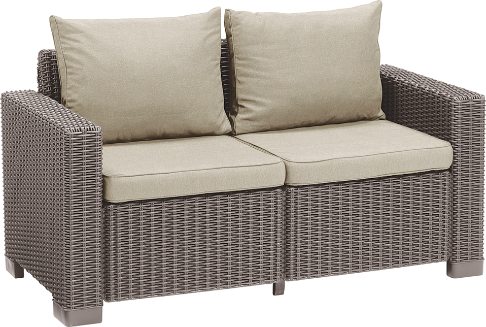 Превратите свой сад или патио в роскошную гостиную на открытом воздухе с 2-местным диваном Калифорния. Изготовленный из устойчивой к погодным условиям пластика диван никогда не заржавеет, не истлеет, не сгниет и не выцветет. Практически не нуждается в уходе и всегда выглядит как новый. Благодаря толстым подушкам и очень широким сиденьям этот диван представляет собой великолепное сочетание стиля и комфорта для идеального отдыха.