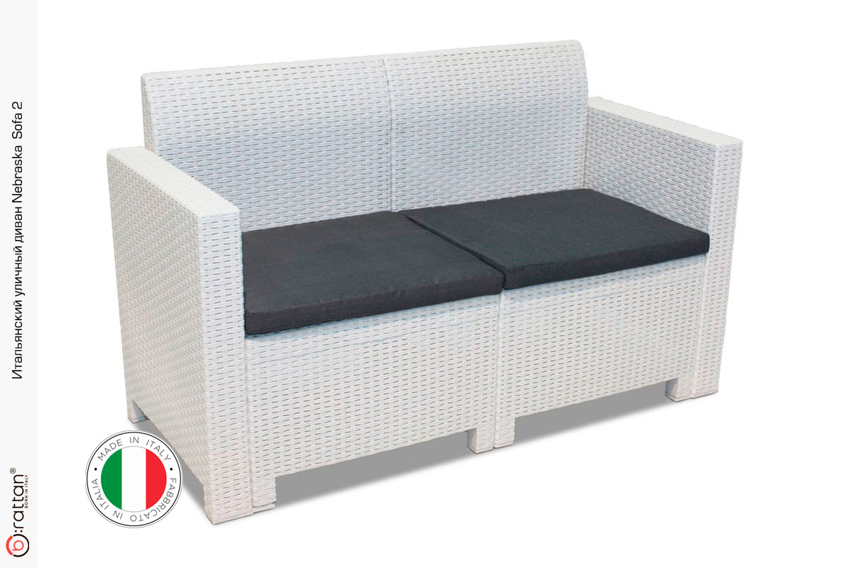 Стильный итальянский диван для кафе, ресторанов и отелей Nebraska Sofa 2 от итальянского производителя B:Rattan рассчитан на 2 персоны. Пластиковый диван порадует любителей плетеной мебели своей фактурой в стиле ротанг и прочностью: максимальная нагрузка до 160 кг.