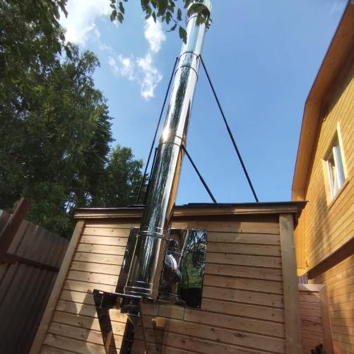 Подключение дымохода Вулкан 150/250 мм (верхнее подключение, выход через стену) материалы + установка + изоляция стены