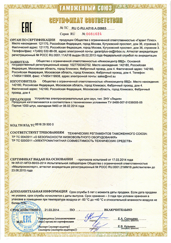 Инструкции, чертежи, документы - Электрическая печь для бани Инжкомцентр ВВД Лидия М 18 кВт