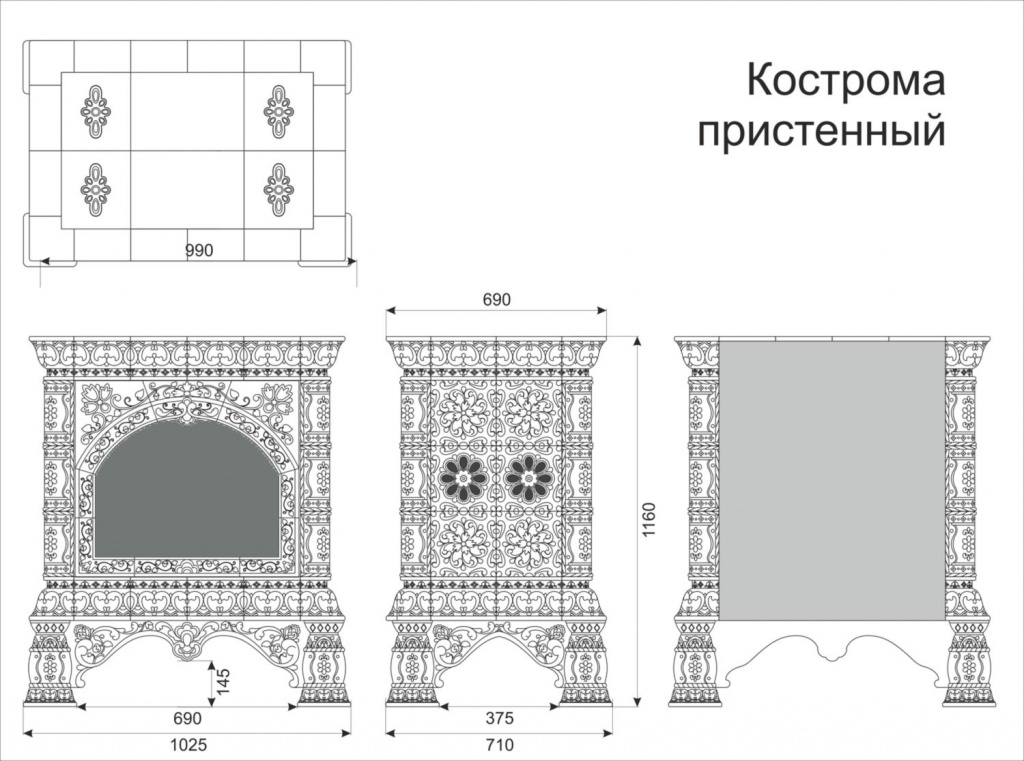 Инструкции, чертежи, документы - Готовый камин КимрПечь Кострома-Д пристенный