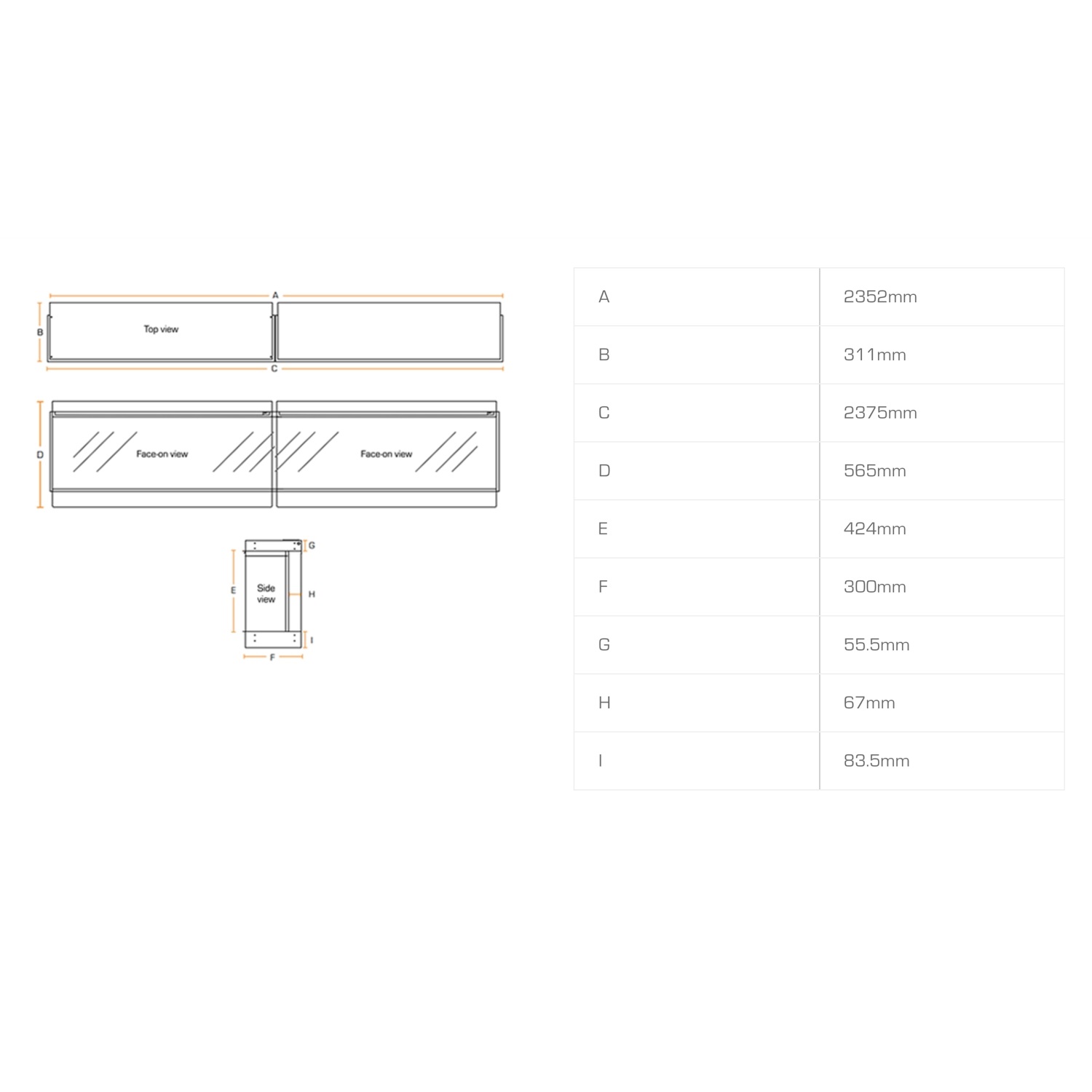 - Ширина, мм 2375