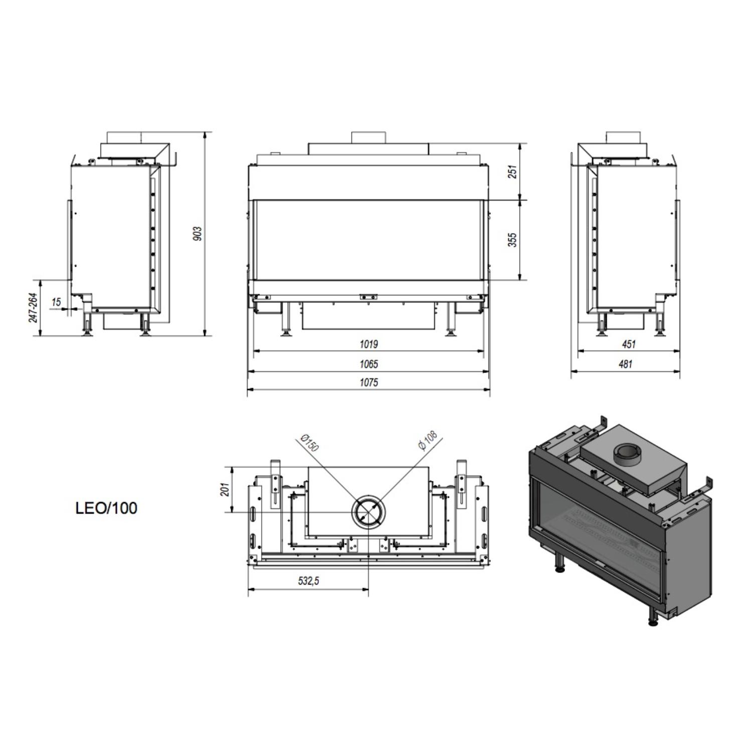 - Диаметр дымохода, мм 108, 150