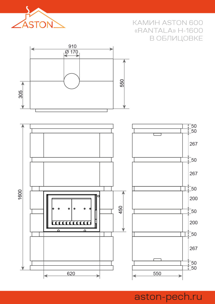 Инструкции, чертежи, документы - Готовый камин Aston 600 Rantala Н-1600 Талькохлорит / Пироксенит