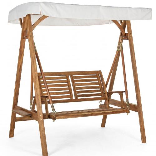 Noemi Swing отличается элегантностью в стиле ретро, которая пользуется всеобщим признанием. Тепло древесины акации сочетается с белым роскошным навесом, который защитит от неприятных прямых солнечных лучей, благодаря чему ничего не помешает максимально расслабиться во время отдыха. Noemi Swing придает пространству шикарную атмосферу, будто вы находитесь на берегу моря или на английской вечеринке в саду. Еще одним плюсом являются полки небольшого размера с обеих сторон каркаса, на которые можно положить вещи или любые другие мелочи.