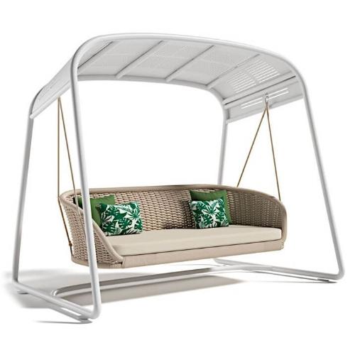 Качели Ludo - это модель, выполненная из алюминия и плетения каната из тефлонового акрила. Мебель идеально подходит для обстановки лаунж зон на открытом воздухе. Канат из тефлонового акрила серого или бежевого цвета оплетает алюминиевый каркас, создавай многочисленные узлы. Канаты ручного плетения из тефлонового акрила круглого сечения, водостойкие, легко чистятся. Материал отличается тактильной мягкостью, как текстильная ткань, устойчив к ультрафиолетовому излучению и быстро сохнет. Вся алюминиевая мебель Atmosphera имеет порошковое покрытие белого или графитового цвета. Порошковое покрытие обеспечивает устойчивость поверхности к ударам и царапинам. Изделия хорошо подходят для того, чтобы их можно было оставлять на улице круглый год и легко чистить.