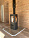 Центральностоящий камин эффектной цилиндрической формы. Выполнен он из нержавеющей стали.