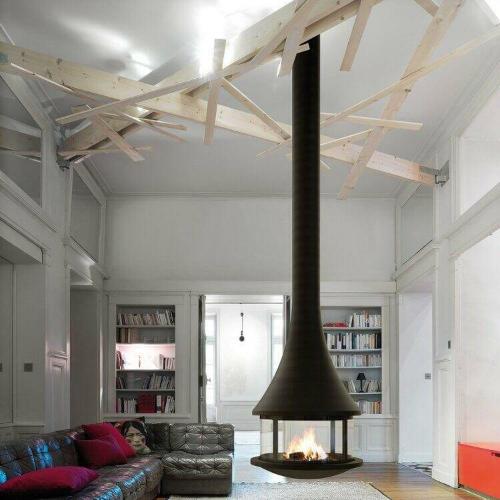 Готовый камин Bordelet Zelia 908 центральный со стеклом (труба 3.5 м.+ крепление + декоративная пластина)