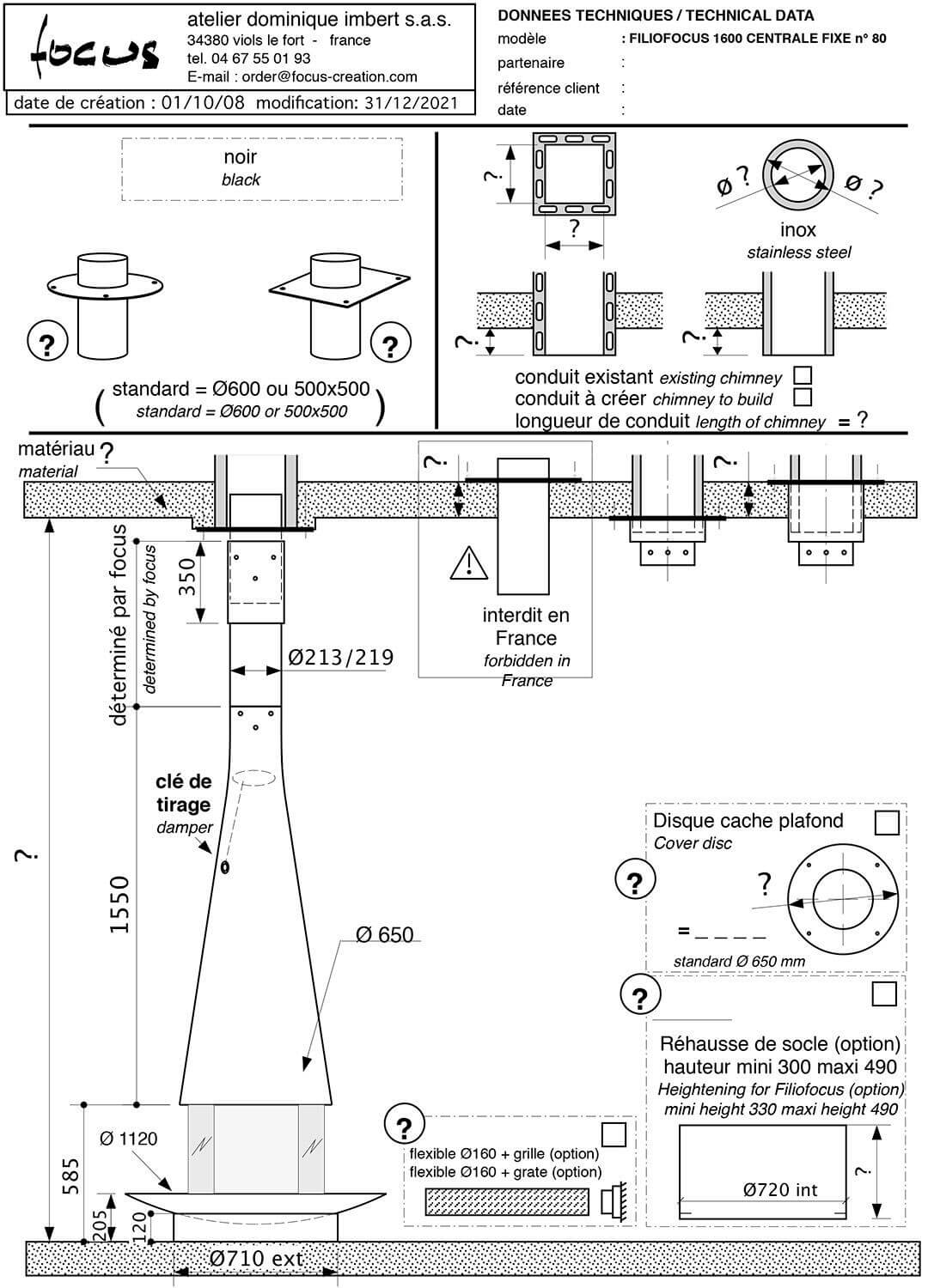Инструкции, чертежи, документы - Готовый камин Focus Filiofocus 1600 центральный, со стеклом