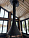 Центральный камин с панорамным стеклом, боковым открыванием дверцы и верхним подключением дымохода выполнен в стиле хайтек с видом на огонь из любой точки помещения.
