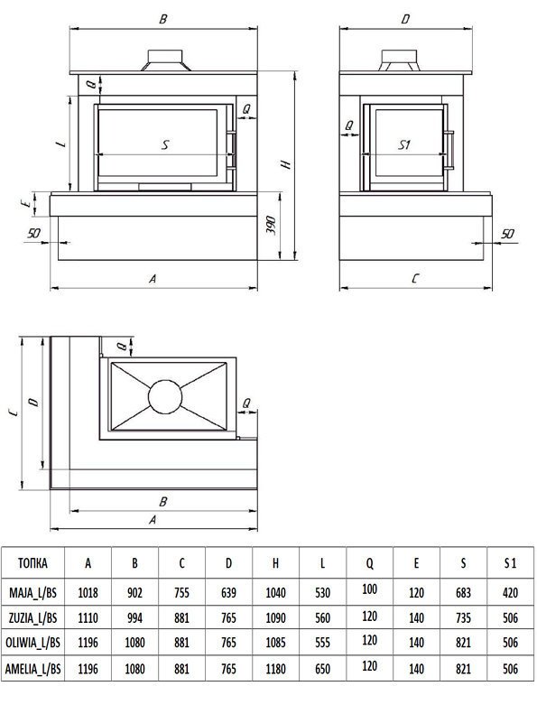 Инструкции, чертежи, документы - Каминная облицовка FireBird Онега (для топки Maja/LP/BS) (угловое стекло слева-справа)