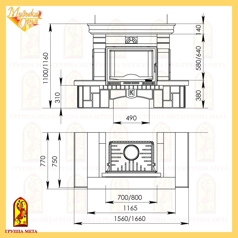 Инструкции, чертежи, документы - Каминная облицовка Мета Ноктюрн рустик 800 серия Музыка огня