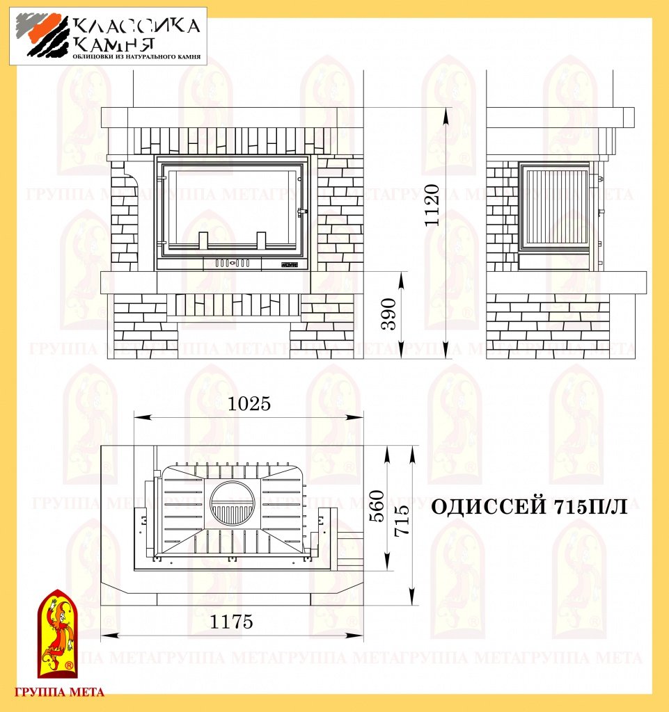 Инструкции, чертежи, документы - Каминная облицовка Мета Одиссей 715 п/л серия Новая Антика