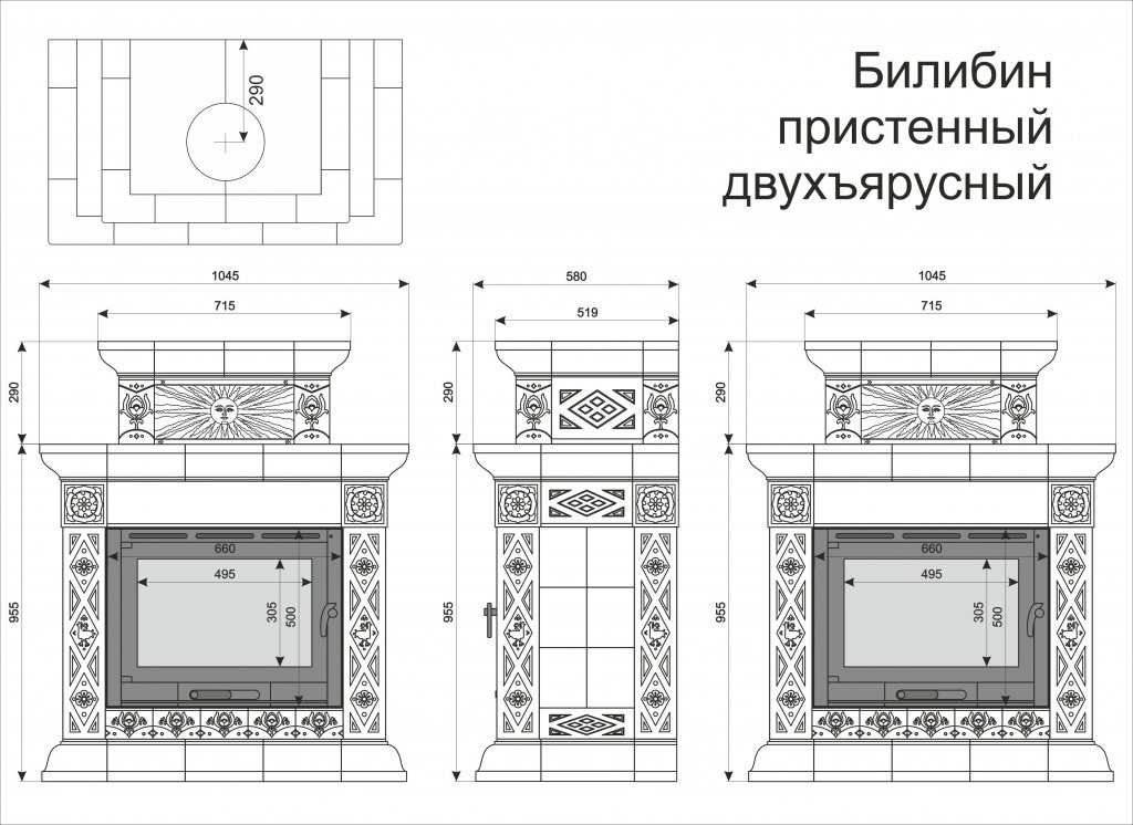 Инструкции, чертежи, документы - Облицовка камина КимрПечь Билибин пристенный-двухъярусный художественный для топок 600