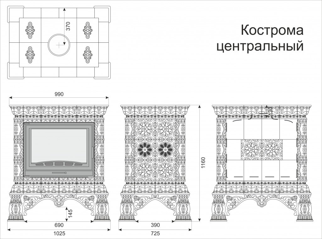 Инструкции, чертежи, документы - Облицовка камина КимрПечь Кострома центральный для топок 600