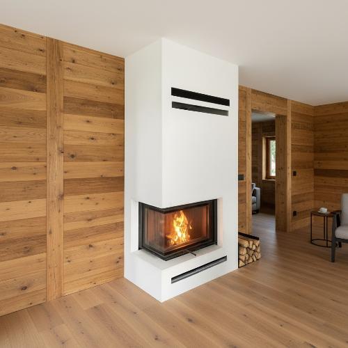 Камин подходит для монтажа в домах с деревянными стенами и перекрытиями