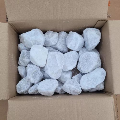 Камни для бани Bas Кварц супер белый шлифованный крепкий окатыш 4-7 см (коробка 20кг)