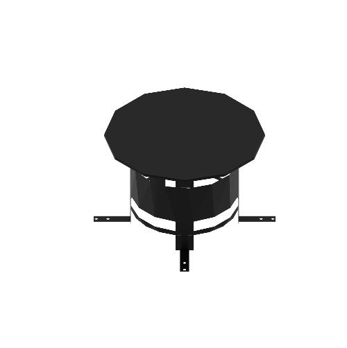 Верхний комплект – завершающая часть дымохода. «Стандартный верхний комплект» состоит из покровной плиты с закреплённым зонтом, выпускной гильзой и набором для крепления, устойчивым к коррозии и нагреву. Элементы выполнены из нержавеющей стали и окрашены термостойкой краской в чёрный цвет.