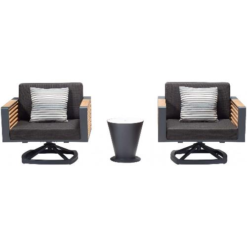 Для подушек выбран олефин, материал на основе полипропилена, легкий, с низкой степенью влагопоглощения и быстросохнущим. Превосходная устойчивость к солнечному свету и плесени, и, прежде всего, материал, который не выцветает. Идеально подходит для этой коллекции, где преобладает черный цвет: от черного цвета обивки до черного цвета алюминиевой конструкции с порошковым покрытием, которые, в отличие от искусного использования тикового дерева, создают ощущение сильной динамики.