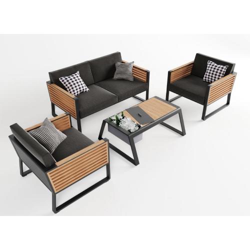 Для подушек выбран олефин, материал на основе полипропилена, легкий, с низкой степенью влагопоглощения и быстросохнущим. Превосходная устойчивость к солнечному свету и плесени, и, прежде всего, материал, который не выцветает. Идеально подходит для этой коллекции, где преобладает черный цвет: от черного цвета обивки до черного цвета алюминиевой конструкции с порошковым покрытием, которые, в отличие от искусного использования тикового дерева, создают ощущение сильной динамики.