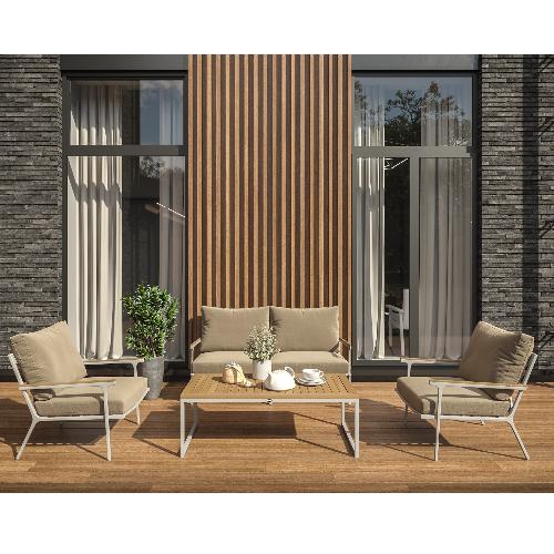 Особенности: подлокотники и планки столешницы из благородного тика, уличная ткань (олефин), съемные чехлы подушек на "молнии", дополнительно можно приобрести комплект защитных чехлов