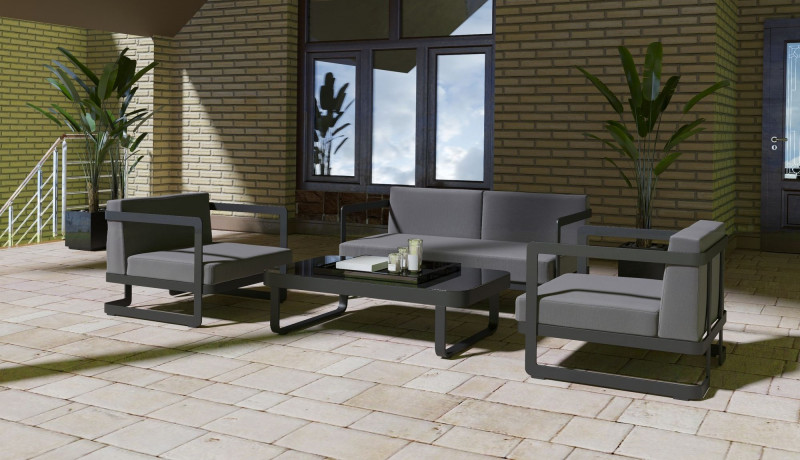 Цвет: каркас темно-серый карбон / подушки антрацит / столешница черная глянцевая