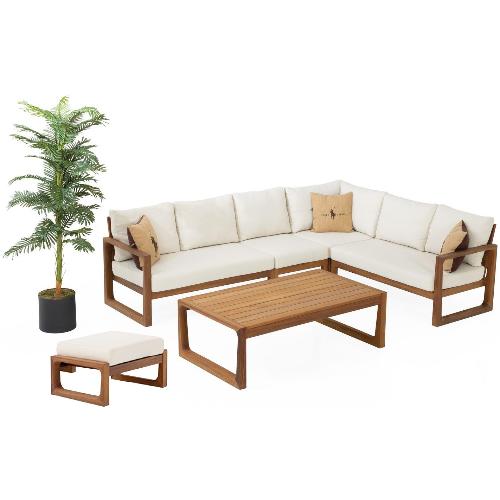 Комплект мебели Deep отличается своей долговечностью, устойчивостью к сезонным изменениям, солнечному свету и другим внешним факторам. Использование эксклюзивных материалов, таких как дерево ироко и ткани для уличного использования - все это украсит Ваше жилое пространство и позволит максимально насладиться отдыхом на свежем воздухе.