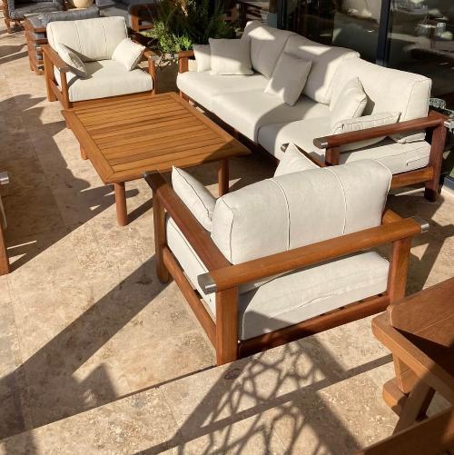 Theo представляет собой комплект, состоящий из 3-местного дивана, 2-местного дивана, кресла и кофейного столика. Мягкие подушки обеспечивают максимальный комфорт во время отдыха, а столик делает лаунж комплект завершенным.