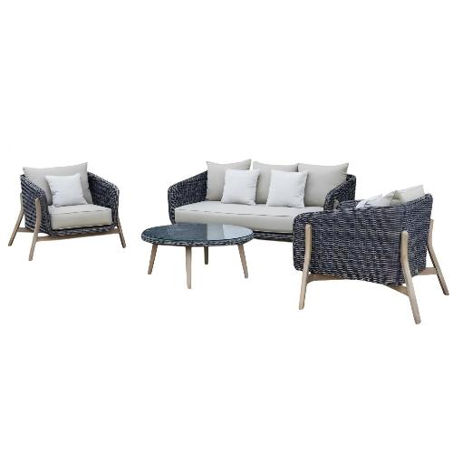 Jura представляет собой комплект лаунж мебели из искусственного ротанга, состоящий из 3-местного дивана, двух кресел, кофейного и бокового столиков, которые обеспечивают удобство и комфорт во время сидения. Благодаря своей универсальности и красоте мебель коллекции Jura успешно справляется с задачей, когда дело доходит до украшения дома, сада, террас или общественных пространств.