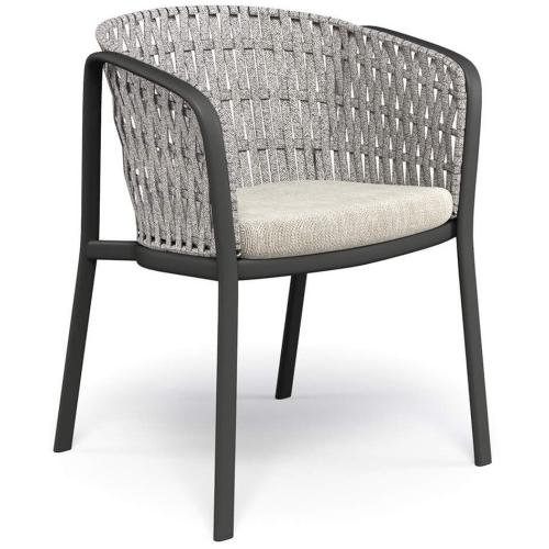 Каркас кресла выполнен из трубчатого алюминия. Сиденье изготовлено из листа алюминиевого сплава, который вытягивается для придания ровной формы, а затем крепится к алюминиевой раме с помощью структурной сварки, выполненной с использованием технологии TIG, которая обеспечивает особое сопротивление, а также лучший стандарт с точки зрения прочности и эстетики. Структура стальной спинки поддерживает декоративные узоры, предлагаемые в различных материалах. Все выбранные материалы гарантируют длительную стойкость и стабильность цвета.