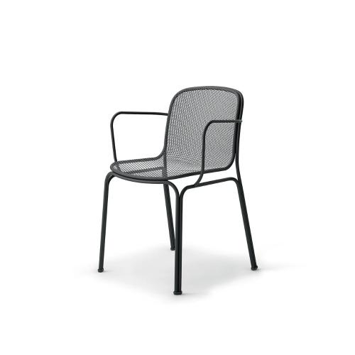 Villa 2 - это современное кресло с подлокотниками, вдохновленное столиками на свежем воздухе в парижских уличных кафе. Металлическая сетка - предварительно отформованный продукт из просечно-вытяжного листа - в сочетании с четырьмя трубчатыми стальными элементами образует легкую, но прочную раму. Узкие подлокотники являются естественным продолжением контура кресла и делают его использование более удобным. Кресло может быть сложено до 6 шт. в высоту, а также может использоваться в качестве сидения в саду, на террасе, на свежем воздухе или на мероприятиях под открытым небом.