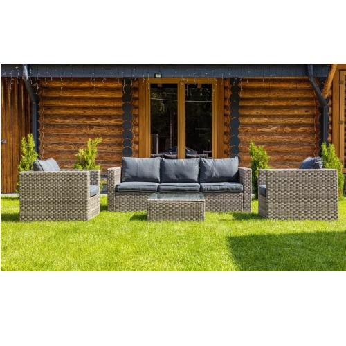 Cерая лаунж-зона KARL идеально подходит для уютных вечеров в компании друзей и семьи! Металлический каркас делает мебель надежной и устойчивой, с ним она выдерживает высокие весовые и механические нагрузки, не деформируясь и не теряя своих свойств. Также особым преимуществом комплекта является его устойчивость к погодным условиям: влага, дождь, прямые солнечные лучи, перепады температуры не являются угрозой для мебели KARL. Комплект для зоны отдыха дополнен мягкими подушками со съемными чехлами из водоотталкивающей ткани. Поэтому совсем не обязательно убирать их на время дождя! Лаунж-зона KARL серого цвета выполнена в универсальном стиле, который идеально впишется как на открытой террасе, так и под навесом или в саду. Комбинация элегантного плоского плетения серого оттенка и графитовых подушек – достойный центр вашей загородной жизни!