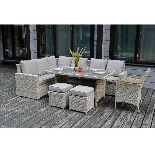 Размер коробок: 3 места - Стол:152х11х91,5 см Диван, пуфы:178х68х86 см Кресло: 85х64х112