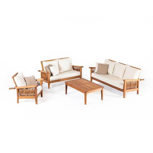 Terra представляет собой комплект, состоящий из кресла, 2-х и 3-хместного дивана и кофейного столика, которые обеспечивают удобство и комфорт во время сидения. Коллекция позволяет создать бесконечные комбинации для зоны отдыха на открытом воздухе.