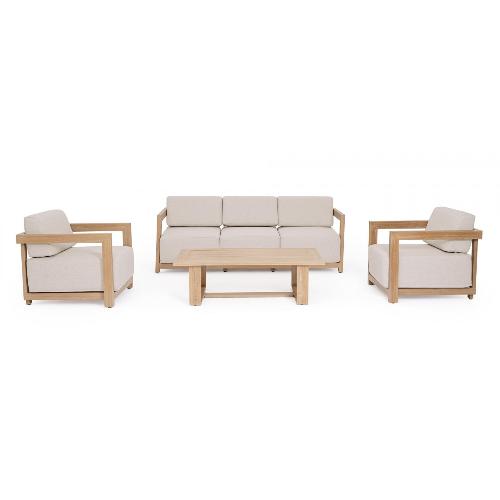 Theseus – это комплект лаунж мебели, разработанный для комфортного размещения 5 человек. Классические строгие линии в сочетании с мягкими и удобными подушками делают комплект идеально подходящим для создания современной и спокойной обстановки. Каркас из алюминия с отделкой "под дерево" придает всему набору домашний и мягкий характер.