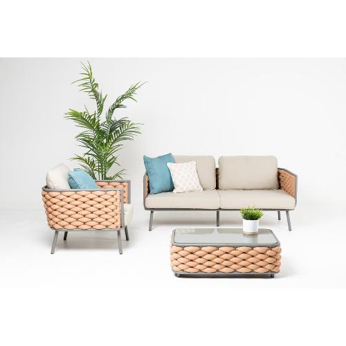 Комплект лаунж мебели Manhattan – это интересное решение для обустройства зон отдыха в отелях, spa-салонах, летних кафе, веранд ресторанов и любых других мест как на открытом пространстве, так и в помещении. Яркой изюминкой является специальное плетение ручной работы из высококачественных материалов. Набор мебели состоит из двухместного дивана, кресла, журнального столика и рассчитан для размещения трех персон. Изделия с современным и минималистичным дизайном, а также гарантированным комфортом сохраняют теплоту и классицизм, характерный для плетенной мебели.