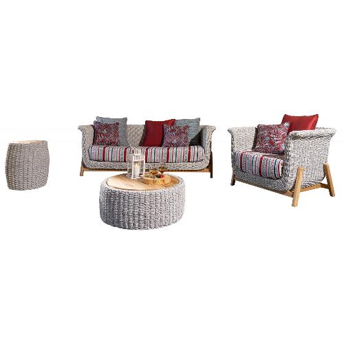 Коллекция Zante сочетает в себе естественную красоту цельного тика с мастерством плетения из инновационных канатов, подходящих для использования на открытом воздухе. Изысканный дизайн сочетается с удобством сидений и вниманием к деталям. Комплект лаунж мебели включает в себя два столика-контейнера разной высоты и диван с креслом. Он рассчитан на комфортное размещение 4-х человек и разработан для создания престижных лаунж зон в отелях, ресторанах и любых других пространствах на свежем воздухе.