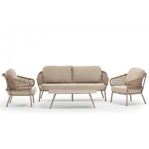 Комплект Atol состоит из двухместного дивана, двух кресел и журнального столика. Алюминиевый каркас с порошковым покрытием делает мебель комплекта устойчивой и надежной. Подлокотники и спинки кресел и двухместного дивана оплетены акриловым канатом, благодаря чему комплект выглядит стильно в любом помещении или на открытой площадке. Подушки с устойчивыми к пятнам и ультрафиолетовому излучению съемными акриловыми чехлами обеспечивают комфортный отдых.