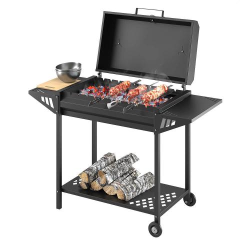 В боковых стенках предусмотрены гнёзда для укладки шампуров. Одновременно на мангале можно готовить до 10 порций продуктов.