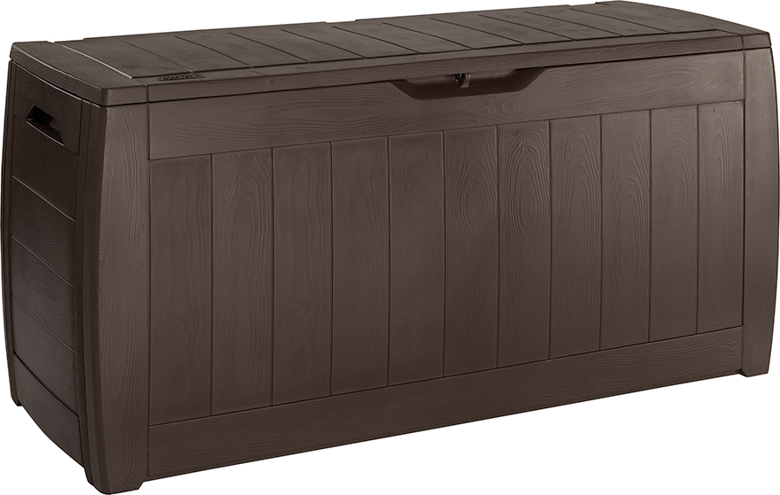 Садовый ящик Hollywood – небольшой, но практичный – идеально подходит для хранения садовых игрушек и аксессуаров. Текстура с эффектом дерева придает ящику стильный вид, прекрасно сочетающийся с пространством сада. Прочной, устойчивой к погодным условиям конструкции не страшна ржавчина, вмятины и плесень – спустя много лет пользования он будет выглядеть столь же красиво. Боковые ручки упрощают переноску ящика, а закрываемая крышка защищает содержимое.