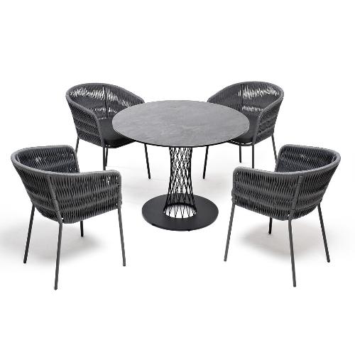 Обеденная группа 4SiS Диего на 4 персоны со стульями Бордо плетения колос, столешница серый гранит