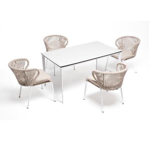 Обеденная группа 4SiS Малага на 4 персоны со стульями Милан, каркас белый, роуп бежевый