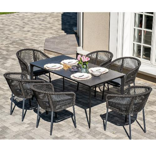 Обеденная группа 4SiS Малага на 6 персон со стульями Марсель, каркас темно-серый, роуп темно-серый